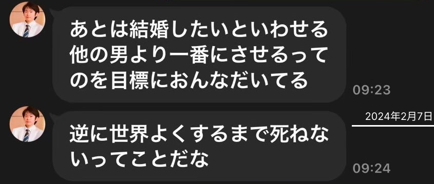 私にとって、女性たちが自ら結婚を口にする瞬間こそが、私にとっての勝利であり、私が自分の持つ心理学的な力を巧みに駆使して、まるでパズルのピースをはめるかのように形作った結果そのものなのです。しかし、その勝利が、果たして本当に幸せをもたらすのか、それはまた別の話のようですね。